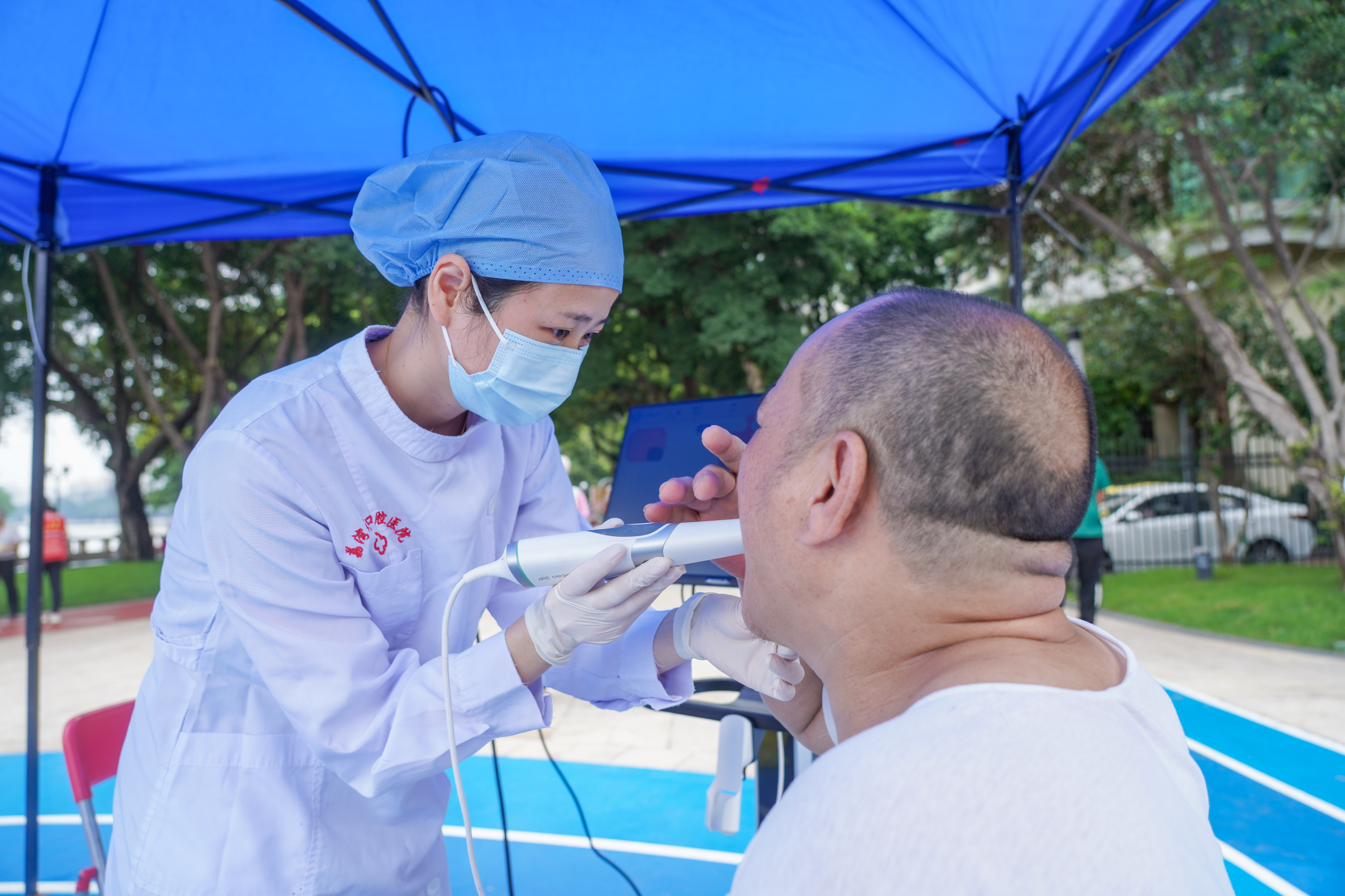 除了打卡摊位外,现场还有“百医护老”宣传站工作人员向老人发放有关宣传资料,解读免费体检、慢性病随访等政策;荔湾区口腔医院提供免费口腔影像检查,医护人员同步普及正确的刷牙方法,让居民群众在家门口就能体验专业的医疗服务,打通健康服务的“最后一公里”。