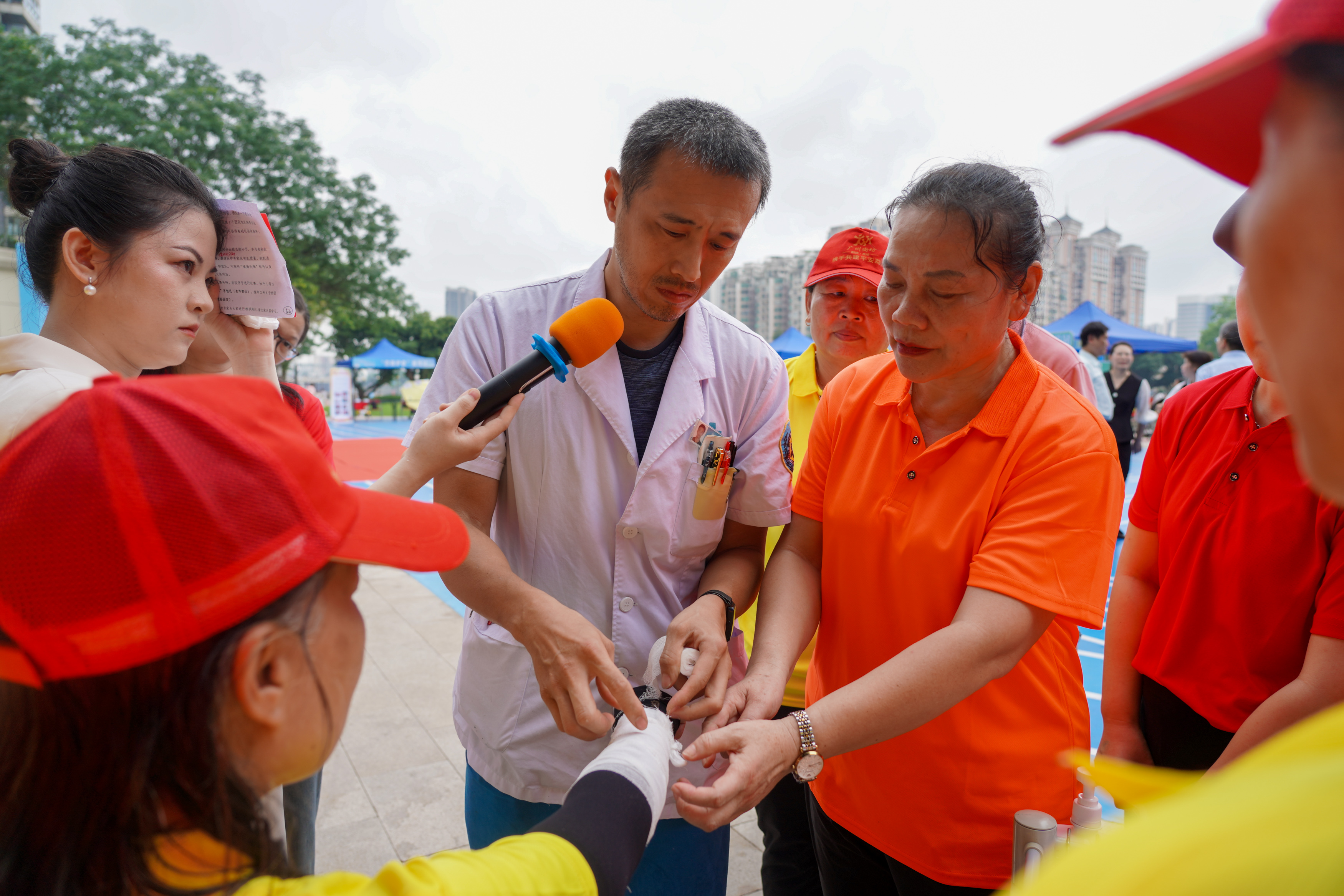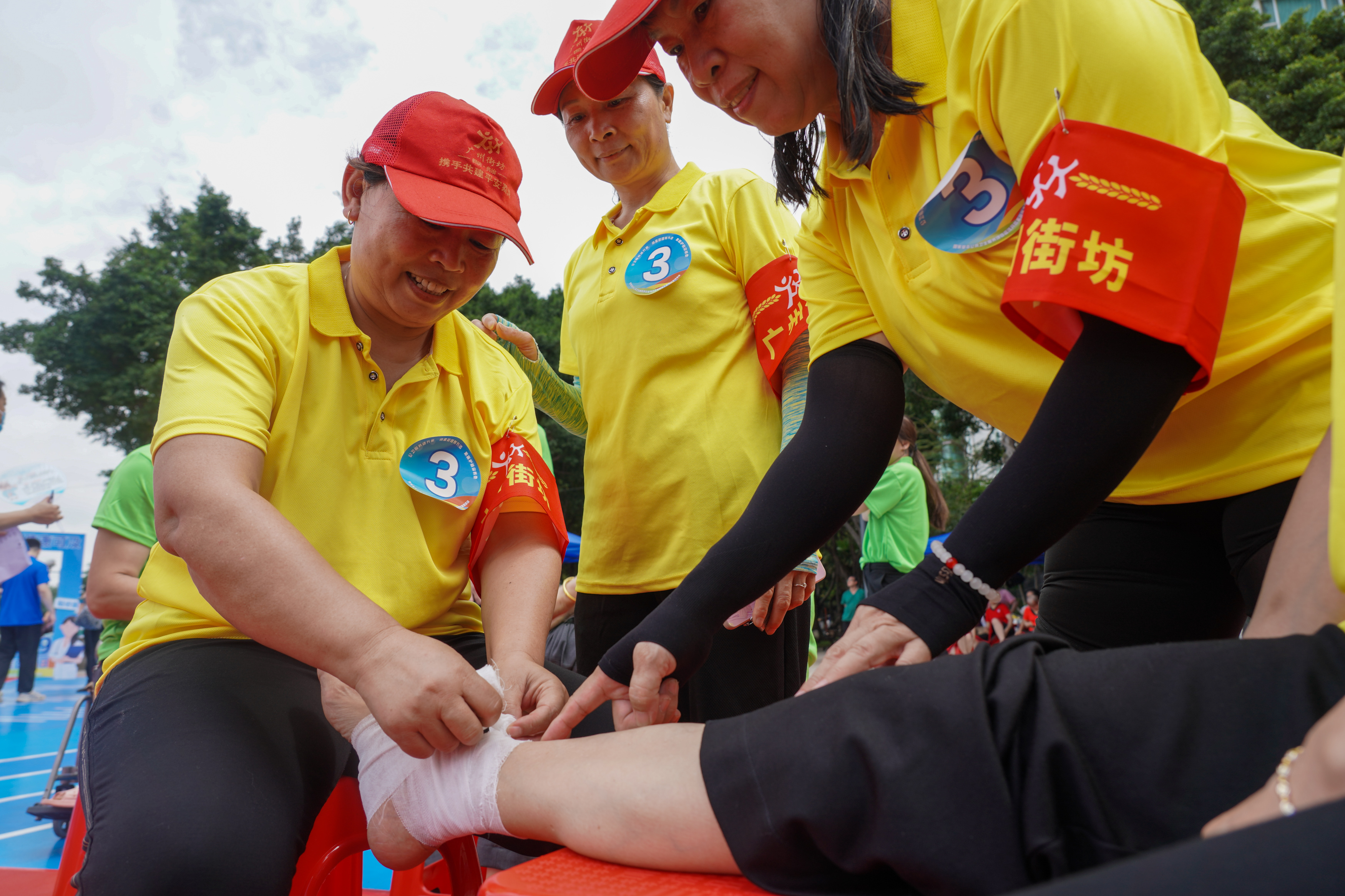 “伤口包扎不宜过紧,也不能过松,不然会影响伤口的愈合速度。”现场特别邀请了荔湾中心医院专家赵云为大家示范绷带包扎法等外伤应急处理技能,并讲解包扎的技巧以及要点。随后的实战比拼中,平安促进队以规范的操作和高效的配合获得第一名。